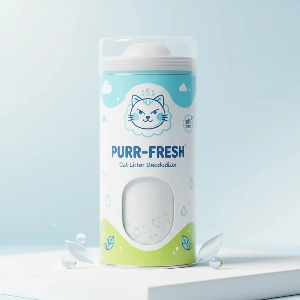 Natural baking soda-based deodorizer for a fresh-smelling litter box.