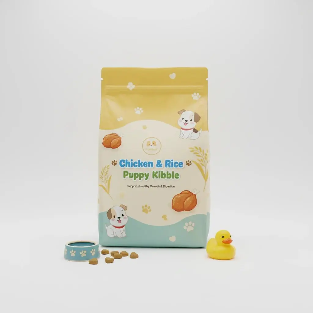 Nutrient-rich dry kibble with chicken and rice formula made for growing puppies.